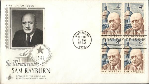 FIRST DAY OF ISSUE HARRIS & EWING PHOTO 1882 1961 In Memoriam SAM RAYBURN SPEAKER OF THE HOUSE AND RESPECTED DEMOCRATIC LEADER Art Craft SEP 16 9-AM 1962 TEX 4* SAM RAYBU CCCC SAM RAY BURN FIRST DAY OF ISSUE 24 4* SAM RAYBURNO SAM RAYBURN