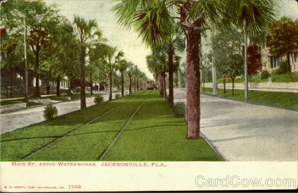 Front: MAIN ST. ABOVE WATERWORKS, JACKSONVILLE, FLA. E. C. KROPP, PUBL. MILWAUKEE, NO. 1748 Back: THIS SIDE IS FOR THE ADDRESS.