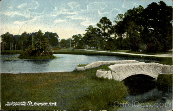 Front: Jacksonville, Fla., Riverside Park Har Back: THE HUGH C. LEIGHTON CO., MANUFACTURERS, PORTLAND, ME., U.S.A. 500 STON 6 PM Miss Lulu A. Heald Barre Plains mass UNITED STATES OF 3. 106 FRANKLIN 1790 LNE 1907