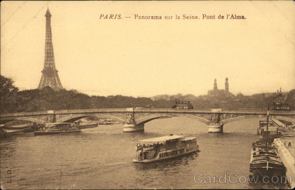 Front: PARIS. - Panorama sur la Seine. Pont de l'Alma. Back: Quelques pays étrangers n'acceptant pas la correspondance de ce côté, se renseigner à la Poste. ADRESSE