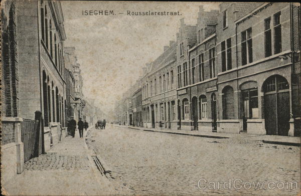 Front: ISEGHEM. Rousselarestraat. Back: Uitg. J. De Busschere, Iseghem. Demandez la Chicorée Fragen Sie Zichorien 1.0 Semoule Fine Korn Fein Postkaart