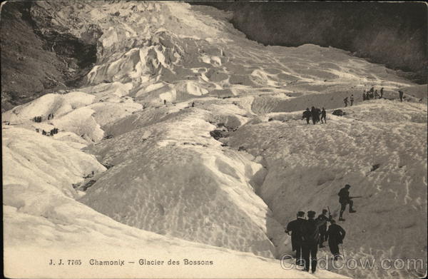 Front: J. J. 7765 Chamonix- Glacier des Bossons 11 鹹 Back: 16.- MTNS- Gracións - Chombens - ( BOSSUNS) Rovel Cuen 1909 Jullien frères, Phot.-Editeurs, Genève MOUNT BLANC, FRANCE GLACIERO SROSSONS *Altitude 1.20 mètres»- GROTTE DU BLANC