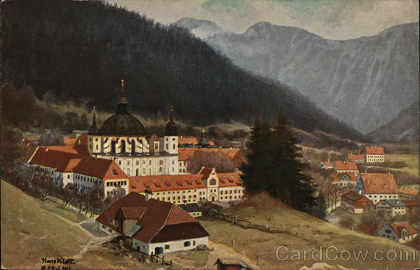 Front: Hans Klett. A.Ett-Lus BELULA SAFARIENBE ***** CAD Back: Hans Klatt, pinx. /. RELIGION Kloster Ettal bei Oberammergau Noris-Kunstverlag Emil Köhn, Nürnberg. Nr. 333/2 Play! - Germany 11100 Noria Runft-Rarte *** бломатная