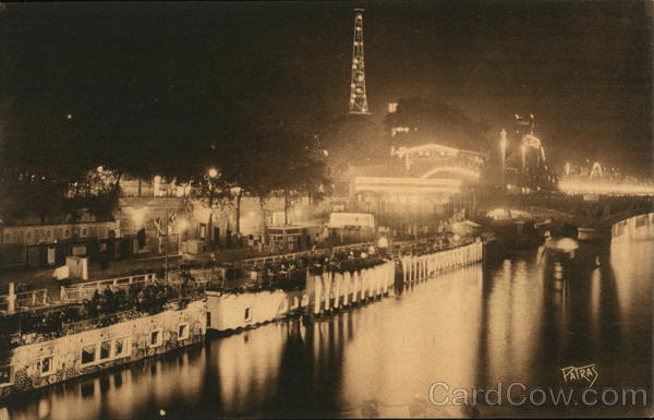 Front: SE 147 LAD PATRAS Back: EXPOSITION DES ARTS DÉCORATIFS PARIS 1925 EXHIBITION OF DECORATIVE ARTS 40. Les bords de Seine vus la nuit On the Seine seen at nijt Patras", Paris. Reproduction interdite Editions d'Art 500