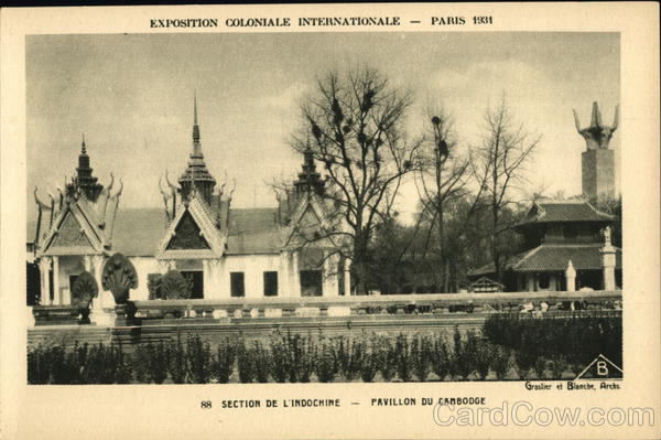 Front: EXPOSITION COLONIALE INTERNATIONALE 88 SECTION DE L'INDOCHINE PARIS 1931 PAVILLON DU CAMBODGE 427 Groslier et Blanche, Archs. Back: 350 BRAUN & Cie, Imp., EDITEURS-CONCESSIONNAIRES PARIS FRANCE CARTE POSTALE