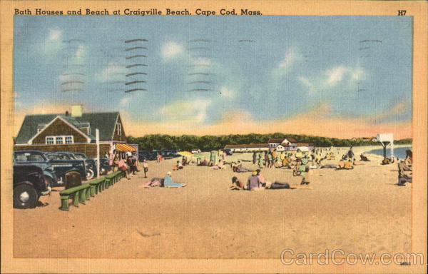 Bath Houses and Beach at Craigville Beach. Cape Cod, Mass.