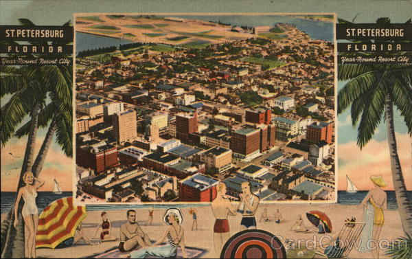 Front: ST.PETERSBURG ST.PETERSBURG FLORID A FLORIDA Year-Round Resort City Year Round Resort City Back: S803 E-5150 300 Distributed by Hartman Litho Sales Company, Largo, Florida Made by Eastern Photo Litho Company, Lowell, Massachusetts