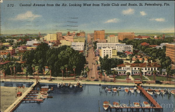 S-72 Central Avenue from the Air. Looking West from Yacht Club and Basin, St. Petersburg, Fla.
