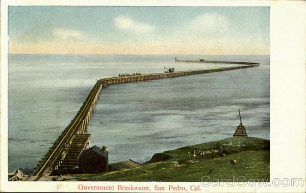 Front: Government Breakwater, San Pedro, Cal. Back: M. Rieder, Publ., Los Angeles, Cal. and Leipzig. No. 3239. TWO CENTS