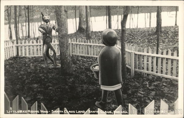 Front: MYN IN LITTLE RED RIDING HOOD-SANTA CLAUS LAND SANTA CLAUS, INDIANA 3-B-95 Back: EK A PHOTOGRAPH CARD-BY W M CLINE CO-CHATTANOOGA TENN