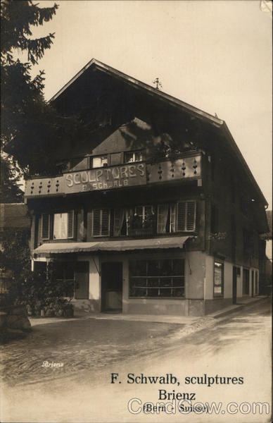 Front: Brienz SCOUPTORES F.SCHOALE F. Schwalb, sculptures Brienz (Bern- Suisse) Back: F. Schwalb, sculptures, Brienz (Bern- Suisse) NOTE pour miss Marie Schoolh