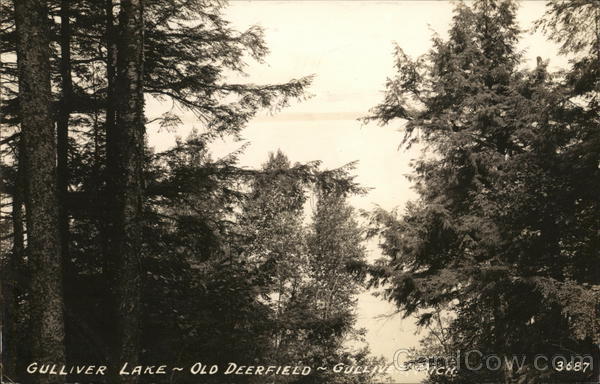 Front: GULLIVER LAKE~OLD DEERFIELD GULLIVE MICH 3687 Back: Mosser Family ALL RIGHTS RESERVED-THE L. L. COOK CO., MILWAUKEE GU MICH A.M 1939 William 1789 1797 Mr Hahn 510 Longwood it. Rockford, elll. /50