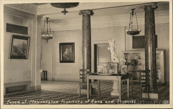 Front: ****** FFFFEE XXXXX MAYORESTER OF ARTS AN EMMA BLOC 0419 FOYER of MANCHESTER INSTITUTE OF ARTS and SCIEN CES. STATE Back: K582 EAzot = STAMP z 0. 67-