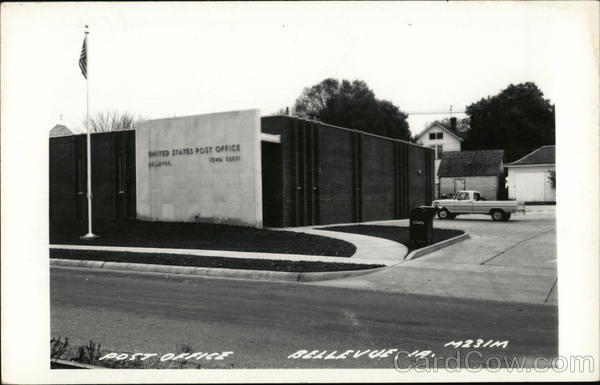 Front: UNITED STATES POST OFFICE IOWA $2031 BELLEVUE OFFICE USMAIL BELLEVUE, IA. M23/M Back: All rights reserved - The L. L. Cook CÂș., Milwaukee you
