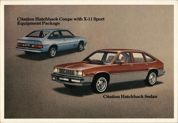 Front: Citation Hatchback Coupe with X-11 Sport Equipment Package 1981 X-11 XII CA Citation Hatchback Sedan Back: Citation Hatchback Coupe with X-11 Sport Equipment Package Citation Hatchback Sedan Litho in U.S.A.