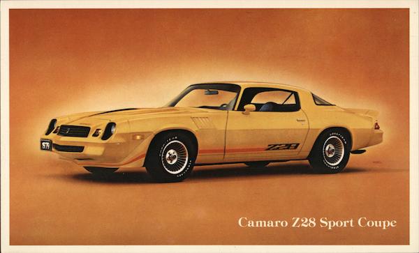 Front: 1979 728 COBSTVER Camaro Z28 Sport Coupe Back: WHEN IT COMES TO VALUE... AMERICA COMES TO CHEVROLET. Chevrolet Camaro Z28 Sport Coupe Litho in U.S.A.