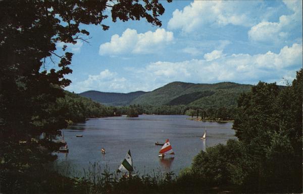 Vt. 658 Unsurpassed quiet beauty while looking north on Echo Lake, Ludlow, Vermont. Photography by Frank L. Forward Koppel Color Cards. HAWTHORNE, N. J. Pub. by Forward's Color Productions, Inc., Manchester, Vermont 05254 97227 Address