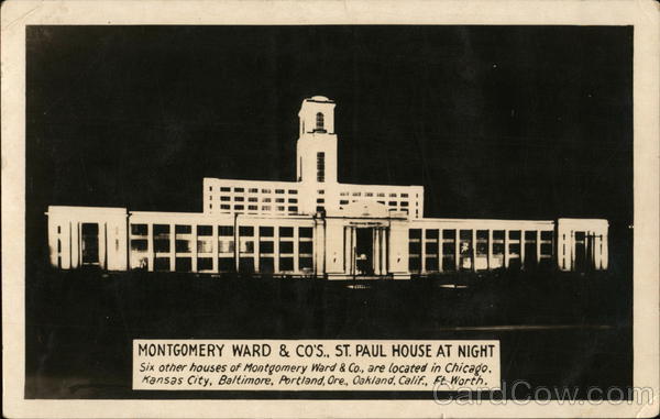 Front: MONTGOMERY WARD & CO'S., ST. PAUL HOUSE AT NIGHT Six other houses of Montgomery Ward & Co., are located in Chicago, Kansas City, Baltimore, Portland, Ore., Oakland, Calif., Ft. Worth. EFFIF Back: گلست A 2 (NO