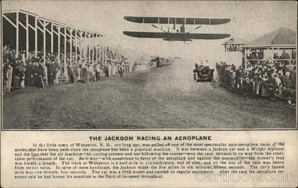 In the little town of Wahpeton, N. D., not long ago, was pulled off one of the most spectacular auto-aeroplane races of the