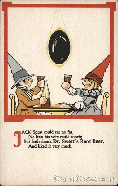 Front: ACK Sprat could eat no fat, No lean his wife could touch; But both drank Dr. Swett's Root Beer, And liked it very much. J₁ Back: Address Only