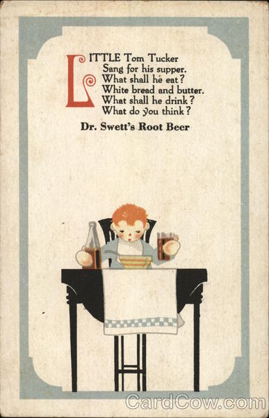 ITTLE Tom Tucker [Ⓡ Sang for his supper. What shall he eat? White bread and butter. What shall he drink? What do you think? Dr. Swett's Root Beer
