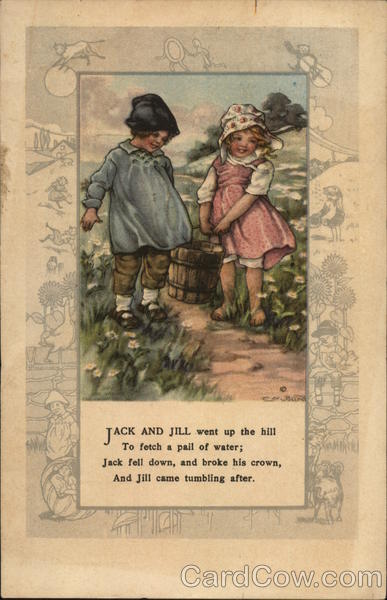 Front: JACK CK AND JILL went up the hill To fetch a pail of water; Jack fell down, and broke his crown, And Jill came tumbling after. AX q Back: SUPERIOR BIG-DANDY BREAD Is Always Good SUPERIOR BAKING CO.