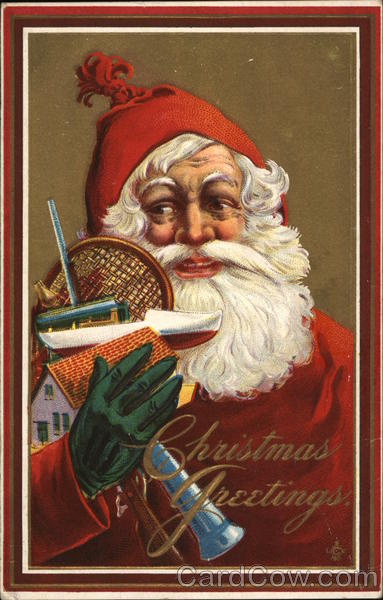 Christmas Greetings - Santa holding toys