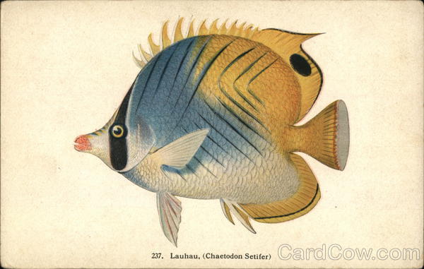 Series R60779 The Aquarium at Waikiki, Honolulu, claims the rarest and most beautiful fish in the world. They are odd in shape having all the hues of the rainbow with the tints laid on as if with the brush. No painter can imitate them nor language do them justice. Words are inadequate to accurately portray these exquisite colors and weird shapes. |
