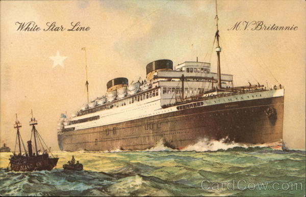 Front: White Star Line #1 RE ISLAND 98 45 ***id est*** ******* ***** CODOLO M.V. Britannic NA 100 Back: M.V. "BRITANNIC," 27,000 Tons, BRITAIN'S LARGEST MOTOR VESSEL, Length 680 feet. Breadth 82 feet. Depth 44 feet. POSTAGE