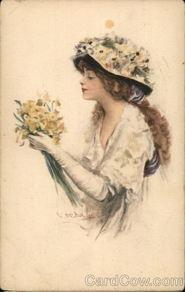 Woman smelling a bouquet of flowers