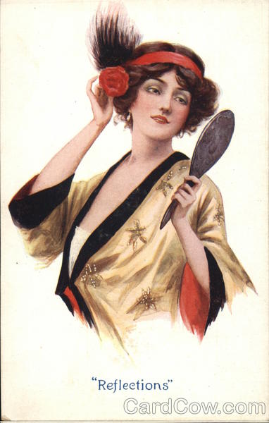 Front: "Reflections" Back: No. 732. "English Girls" Series. Engraved and Printed in England. Published by Degen & Co., London, E.C. -Geendale England. S