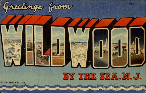 Front: Greetings from W11 BY THE SEA,N.J. CCURT TEICH & CO., INC. Back: LYNN H. BOYER, JR., WILDWOOD, N. J. 3 C-H1416