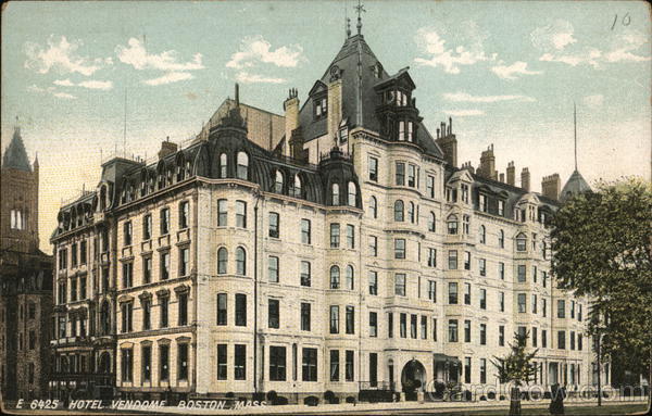 Front: SACE 10 וּוּ אונונים IN ךָ וּם וּ יווי חום ה ש1 וּ E 6425 HOTEL VENDOME BOSTON MASS Back: Two cents