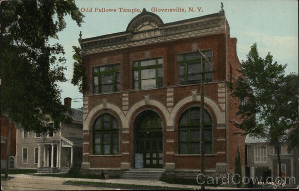 Front: Odd Fellows Temple, Gloversville, N. Y. 100. FAX 201,998 (JV) Back: Published by the Valentine & Sons' Publishing Co. New York and Boston. THROUGHOUT THE WORLD. V& SONS CARD. 5- FAMOUS