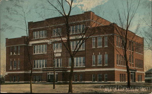 Front: 10.00 70 FFF INAF High School, Nevada, Mo. _|| Back: PUBLISHED BY CENTRAL POST CARD CO., FORT SCOTT, KANSAS. FORT MESSAGE MAY BE WRITTEN ON THIS SIDE. 20 SCOTT, KANS. A-5992 and Island Possessions Cuba, Canada and For Foreign. •