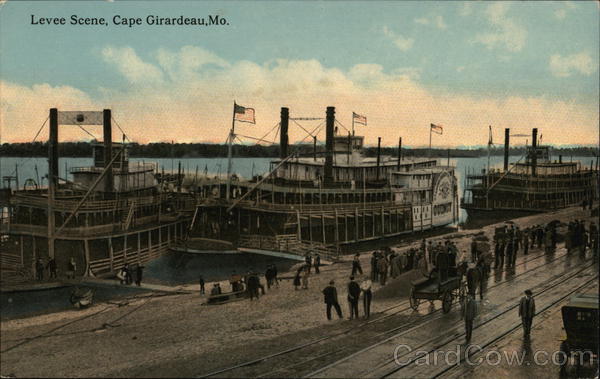 Front: Levee Scene, Cape Girardeau,Mo. FFFF 24 11 QUINCY Back: PUBLISHED BY OSTERLOH'S BOOK STORE, CAPE GIRARDEAU, MO. MADE IN U. S. A. CH Co A-31542 20 THIS SPACE FOR ADDRESS ONLY