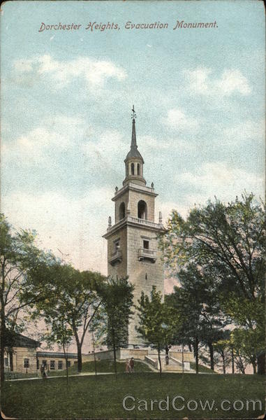 Front: Dorchester Heights, Evacuation Monument. ** Back: 106 We (36988) M....... No. 7279. Pub by Robbins Bros., Boston, Mass. Made in Germany. IN SPACE BELOW MAY BE WRITTEN SENDER'S NAME AND ADDRESS (NO OTHER WRITING)