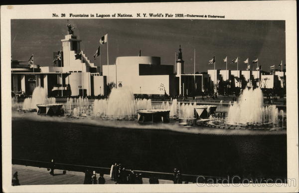 No. 26 Fountains in Lagoon of Nations. N. Y. World's Fair 1939.-Underwood & Underwood