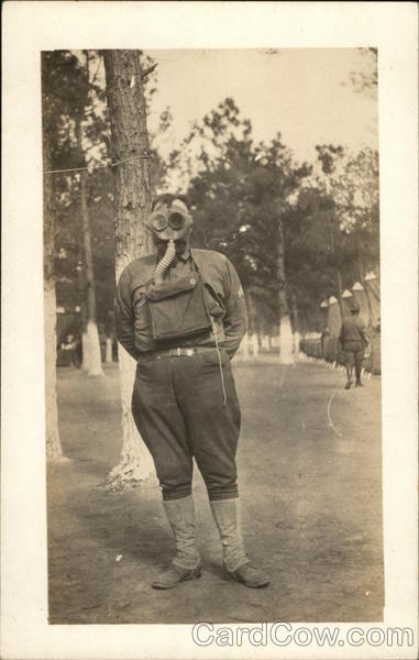 US Soldier Posing in a Gas Mask