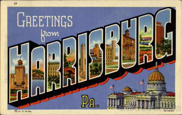 Front: 10 GREETINGS PA. © c. T. & co. 7A-H2387 Back: DISTRIBUTED BY J. B. HOFFMAN & SON, HARRISBURG, PA.