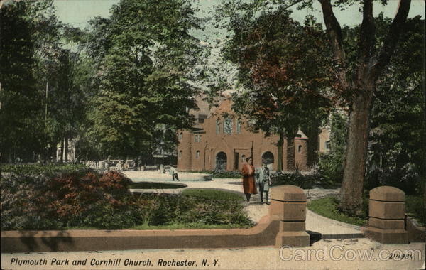 Front: UN Plymouth Park and Cornhill Church, Rochester, N. Y. 214984 Back: The Leighton & Valentine Co.,N.Y. City. P² THROUGHOUT FAMOUS QUALITY TRADE MARK. THE WORLD CARD 20 150 Address Only