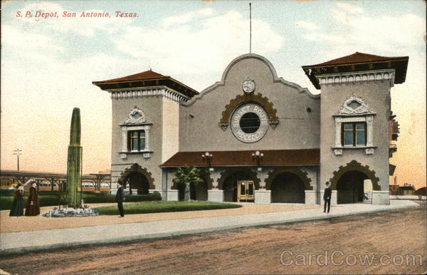 Front: S. P. Depot, San Antonio, Texas. SNOS ROUTE MDCCCCH Back: NIC. TENGG, SAN ANTONIO, TEXAS. 2. به K.B he FRAN لا EC 7 PM ما الله LAY- ما ضا ست ست ساله Montile معتاد اصلات