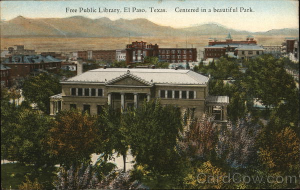 Front: #11 Free Public Library, El Paso, Texas. Centered in a beautiful Park. T Back: 2172 H.S.B. PASO SEP 23 2 1150AM 1924 Love from Тата TEXAS C.T. PHOTOCHROM. R.85509 afte GRADA GL Mary Marshace 688 Delmen San Francine Calaf