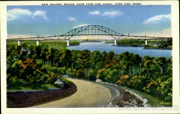 Front: NEW BOURNE BRIDGE OVER CAPE COD CANAL, CAPE COD, MASS, 39050 Back: New Bedford News Co., New Bedford, Mass.