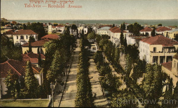 Front: הרסני הבככנית תל־אביב––שדרות רוטשילד Tel-Aviv - Rotshild Avenue in i Back: הוצאת משה ארדמן, תל-אביב, ארץ-ישראל. Nr. 11. Edition Moshe Ordmann, Tel-Aviv Palestine גלויה --Postcard