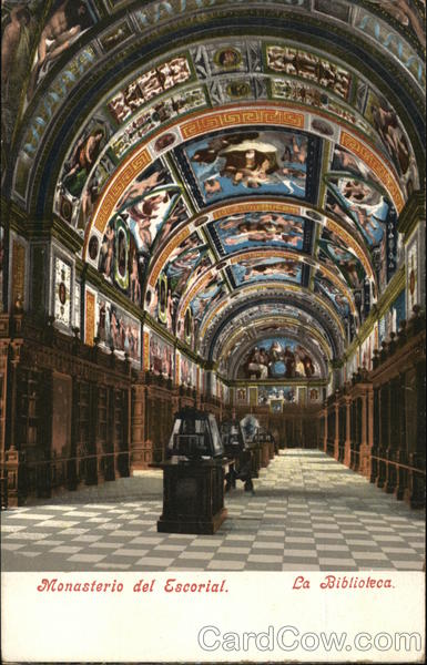 Front: 33 EF 25bddG Monasterio del Escorial. 23 ASTER CHASER La Biblioteca. Back: UNION UNIVERSAL DE CORREOS CORRESPONDENCIA. Purger & Co., München, Photochromiekarte. No. 3751 ESPAÑA. DIRECCION.