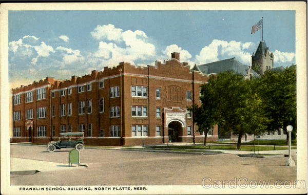 Front: FRANKLIN SCHOOL FRANKLIN SCHOOL BUILDING, NORTH PLATTE, NEBR. Back: PW R-68543 C T AMERICAN ART