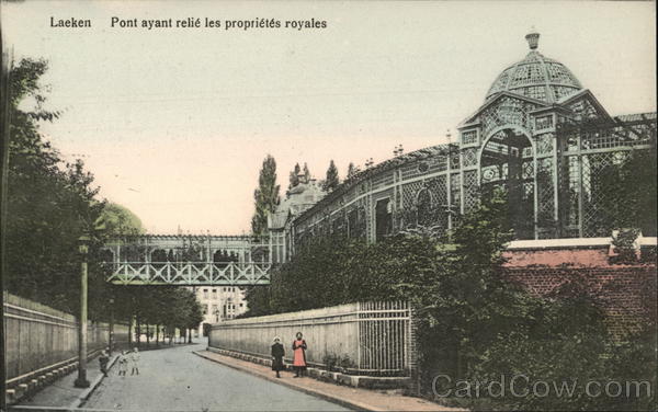 Front: Laeken Pont ayant relié les propriétés royales # JL 443 2.1. Back: Rue Ville.. Mangelschotz, Laeken Expéditeur : POSTKAART M........ ADRESSE