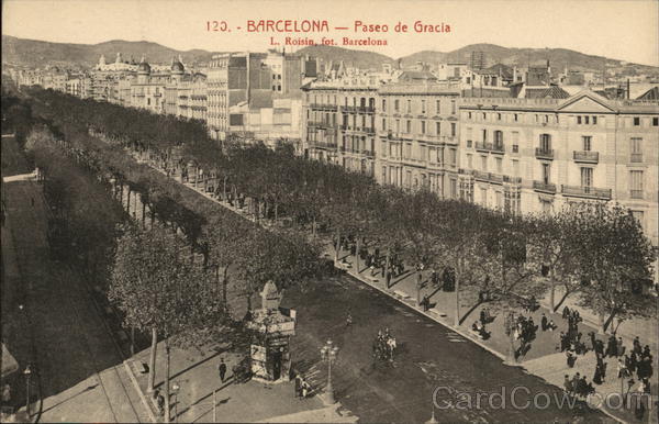 Front: 120. - BARCELONA - Paseo de Gracia L. Roisin, fot. Barcelona AJURIA 30GS ANTIGUEDAMS 101 Back: (Reproduccion prohibida) Correspondencia Direccion ********