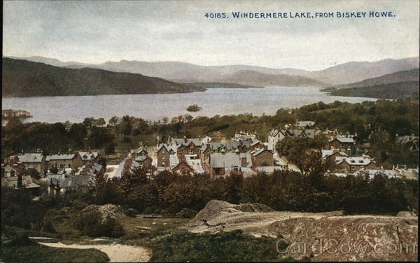 Front: 40185. WINDERMERE LAKE, FROM BISKEY HOWE. CA Back: SANAS A Published by THE PHOTOCHROM CO LTD LONDON & DETROIT U.S.A THIS SPACE FCR COMMUNICATION P.C Affix ½d Stamp 1d Stamp Foreign
